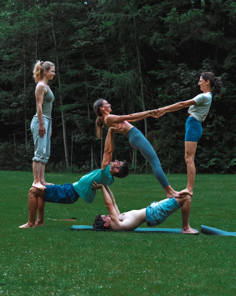 Na naših tečajih so dobrodošli vsi, vadili bomo pravilno tehniko, ki vam bo omogočila akro ne glede na vašo težo/višino.